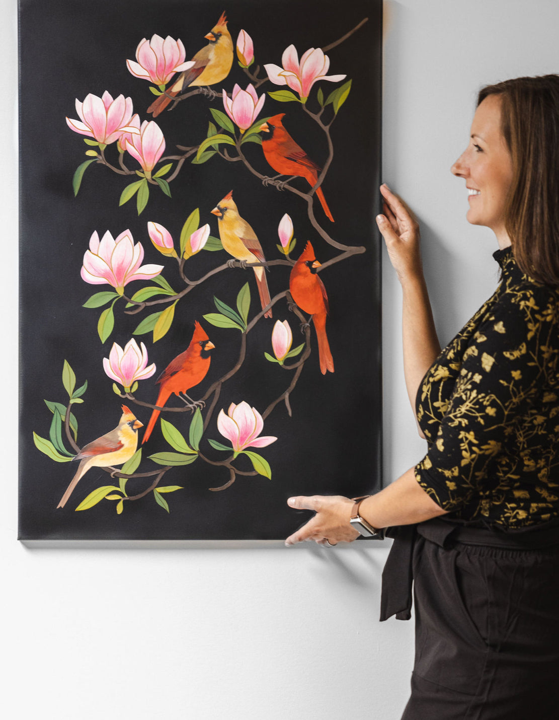I create mixed media art and illustrations using gouache, coloured pencil, and hand-painted cut paper collage.